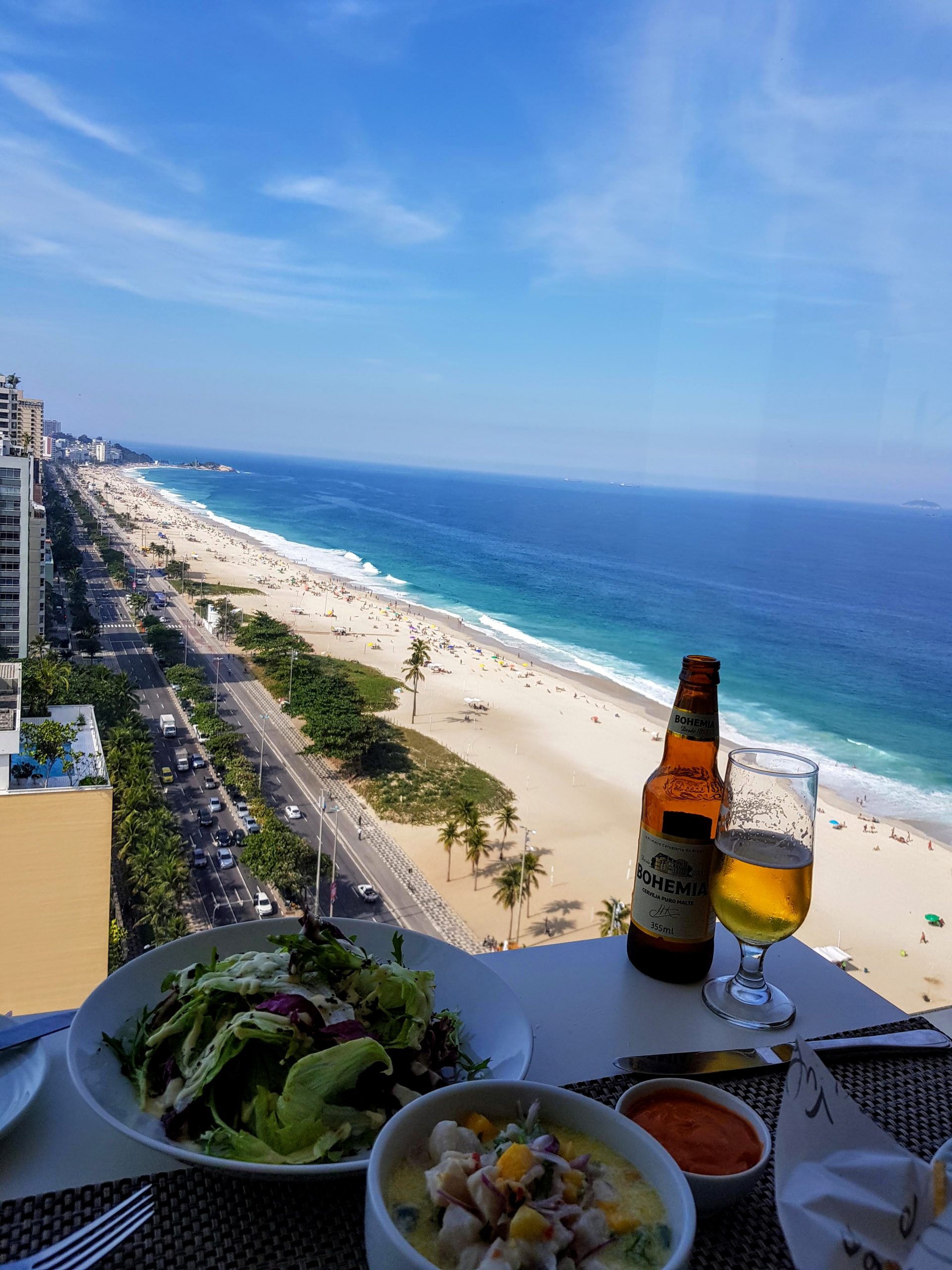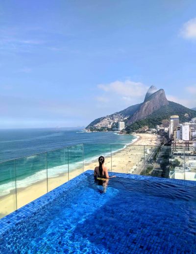Nos gustó mucho su ubicación. Y la relación calidad precio con otros hoteles de la zona, que suelen tener precios muy elevados, es muy buena. Las habitaciones son amplias, modernas, tienen balcón y vistas al mar. Y sobre todo nos gustó mucho la pequeña terraza con piscina y sauna que tiene el hotel, con unas vistas preciosas de la playa de Ipanema, y su restaurante con cristaleras y vistas a la playa y al Cristo Redentor.